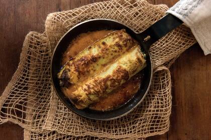 ¿Cómo se arman? Picar la cebolla y el ajo bien chiquitos y después dorar en una sartén. Agregar la espinaca, previamente blanqueda y escurrida (apretándola bien con las manos para que no tenga exceso de agua). Fuera del fuego, agregar la ricota desgranada y el parmesano rallado y salpimentar. Rellenar los crêpes con el relleno de espinacas y colocar los canelones en una fuente de horno. Arriba, colocar salsa blanca y, por último, salsa de tomate. Llevar al horno hasta que estén dorados.