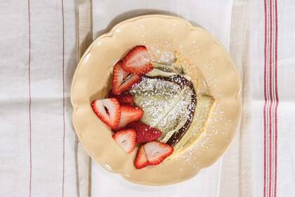¿Cómo se arman? A último momento, y en la misma sartén en la que preparaste los crêpes, untar medio crêpe con Nutella y cerrarlo al medio y al medio nuevamente. Servir con frutillas y, por último, azúcar impalpable.