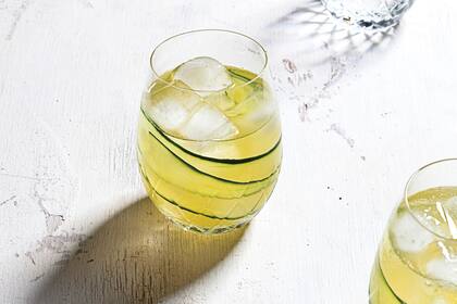 Para el shrub de pepino, mezclar el pepino rallado con el azúcar y dejar reposar en frío tapado con film durante 4 horas. Agregar el vinagre, poner en la heladera otra vez y, al día siguiente, separar el líquido de la pulpa con un colador y luego filtrar con papel. Guardar refrigerado.