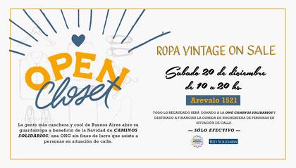 Se viene la segunda edición de esta feria de ropa vintage, canchera y de muy buena calidad. Todo lo recaudado será donado a Caminos Solidarios, una ONG que asiste a personas en situación de calle. La idea de los organizadores es devolver un poco todo lo bueno que la vida les dio este año.