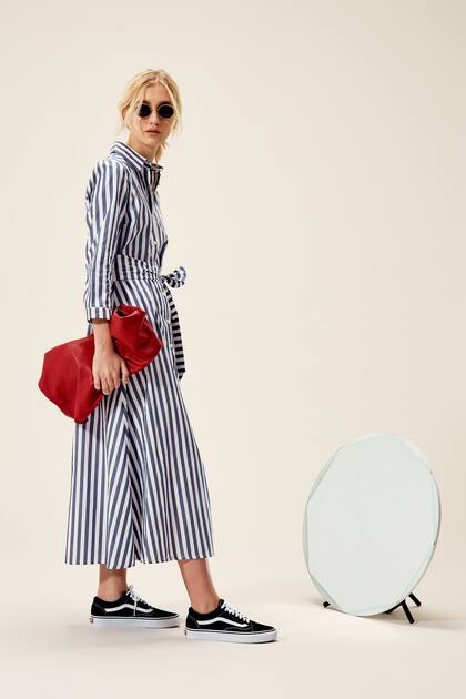- Si vienen con un lazo para atarse en la cintura es ideal porque dan cuenta de la silueta que hay debajo. La tela de camisa suele ser más rígida que el algodón y puede dar un resultado un poco geométrico que vale la pena contrarrestar. Si no te viene con lazo, probá incorporando uno con otra estampa, que puede ser rayada, lisa o con flores. Combinalos con accesorios bien femeninos como unos aros XL y un bolso que contraste en su color.