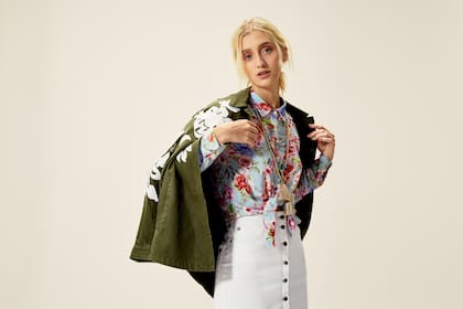 - La camisa caribeña, anudada en la cintura, es otro gesto que denota la nostalgia de los ochentas de esta temporada. Se puede usar sobre una pollera abotonada –must de la temporada- o sobre un jean de tiro bien alto.