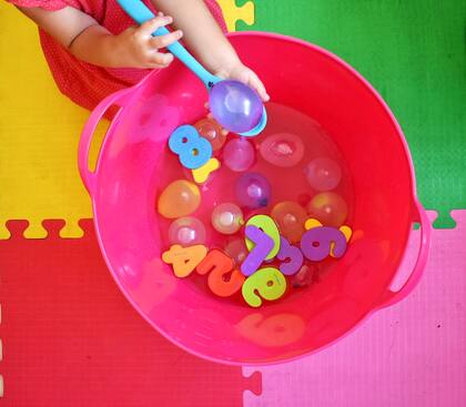 No hay verano sin bombuchas. La consigna es súper fácil: llenar la bañadera o una palangana con bombitas de agua y con un cucharon de la cocina pescarlas. Para agregarle un toque extra podés sumar formas de goma eva del baño y sumarlas al juego. Ojo si hay un bebé en la casa, que no se trague el plástico una vez que se explotan.