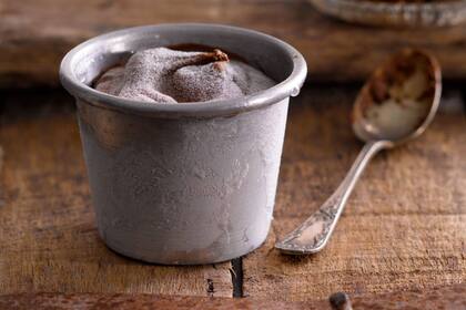 Luego, mezclar las yemas con la preparación del chocolate y agregar la crema batida a ¾ punto. Colocar la preparación en moldes individuales y llevar al freezer. Desmoldar pasando los bordes del molde por agua caliente.