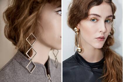 Izquierda: romboidales de metal (Gabriella Capucci, $290). Derecha: largos dorados (Luna Garzón, $980).