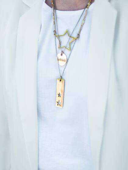 Ahora sí, llegamos a la parte importante: ¡los accesorios!. Este juego de collares es de la marca Ucha. Desde que la conocí en las redes quedé fascinada. Su creadora juega con el mix de dorado y plateado en cada pieza. En mis collares, la cadena es silver y el medallón gold, también es ingeniosa porque trata de salir de las típicas frases como love y peace, por ejemplo el medallón que tengo puesto dice Cocktails. ¿Divertido, no?. Otro punto a favor es que se suma a la tendencia de usar varios collares al mismo tiempo, trabajando con diferentes largos.