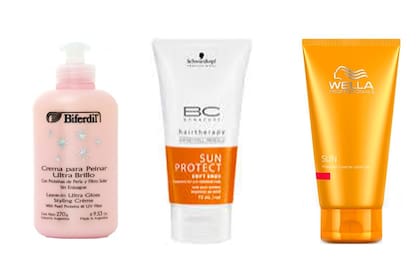Acá les dejo opciones de cremas para peinar que contienen filtro solar. En el caso de que vayan a comprar alguna otra crema más allá de estas que les recomiendo, fíjense bien que la crema que compren contenga filtro solar, ya que es un elemento indispensable para el cabello antes de exponerlo a la playa y al sol.