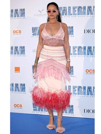 Si hay algo por lo que se caracterizan los looks de Rihanna es por el maximalismo: nada de ir a un evento con un little black dress o salir a la calle con una remera básica y unos jeans. No se anda con chiquitas y así los está demostrando en las premieres de Valerian y la ciudad de los mi planetas, la película de Luc Besson que la llevó a la pantalla grande. RiRi no tiene un papel principal pero, sin dudas, es la protagonista de la alfombra roja.