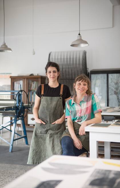 Delfina Estrada (34) y Victoria Volpini (34), son artistas, especialistas en grabado. Eran compañeras y cada una por su parte se copó con el grabado. Vicky se fue a estudiar a España; cuando volvió, se compró una prensa chiquita y se empezó a juntar con Delfi todos los lunes a hacer grabados para aprender la técnica. Acá te contamos cómo armaron su marca y cómo manejan su taller.