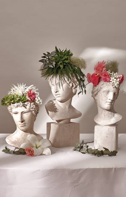 Maquilló y peinó Gaby Ipar. Agradecemos a JTbytb, Gusmán, Bio Verde (flores) y @armartineau (esculturas) por su colaboración en esta nota.