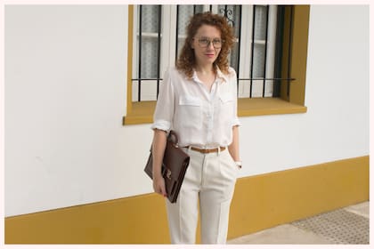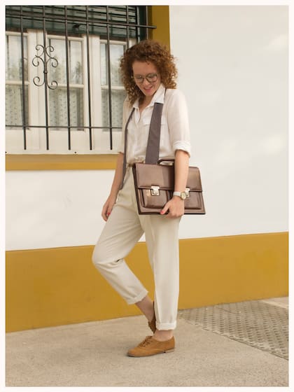 Anteojos: 360 de InterÓptica, Zapatos: Zara, Pantalón, corbata, portafolios, Vintage, Camisa: Swa Mi y Reloj: María Rivolta.