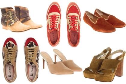 Texanas con hebillas $710 de Loli Van Harden / Zapatillas rojas y beige $720 de Heyas / Slippers de gamuza $425 de Loli Van Harden / Zapatillas animal $959 de Le Loup / Stilettos sin talón $699,50 de Via Uno / Sandalias de gamuza $899 de Viamo