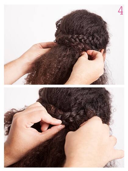 Por último, lo que hacen es cruzar ambas trenzas generando una especie de corona y sujetan con invisibles, hasta que crean que lo sientan lo suficientemente ajustado como para que les dure todo el día perfecto!