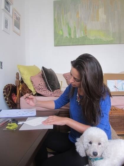 Resulta que yo soy bastante mala dibujando y pintando, aunque me parezca un programón. Pero cuando Valeria Perez Fuchs me invitó a su estudio, donde hace sus cuadritos para El Búho Blanco , y me ofreció enseñarme su técnica, ¡me sumé enseguida! Además, me podía llevar mi cuadrito hecho por mí, para colgar en mi casa nueva.