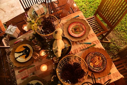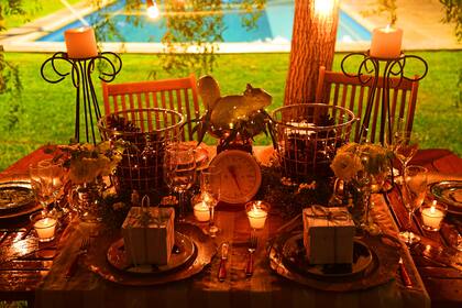 Para esta ocasión, no sólo nos focalizamos en los conjuntos, sino que también vestimos nuestra mesa junto una ambientadora para proponerles una opción rústica para festejar el 24 a la noche al aire libre.