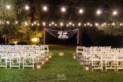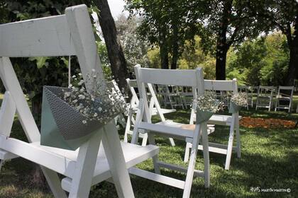 Además, nos gustaba la idea de que los invitados no tuviesen que trasladarse de un lado a otro. Y ni hablar de que podríamos imprimirle nuestro propio estilo a la decoración de la ceremonia. Aquí no hay reglas establecidas ni formalidades que respetar, ¡así que si quisiéramos decorar con origamis o globos el altar, estaría permitido!