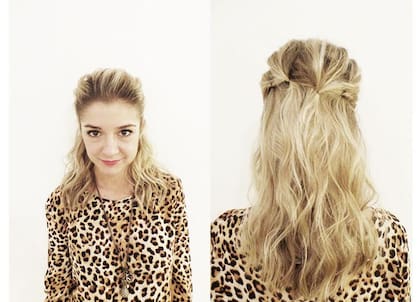 4- Tirá todo el pelo para atrás y fijalo con spray. Si lo querés más prolijo, hacelo con cepillo, a nosotras nos copa que sea un poco más natural, así que lo hicimos con las manos.