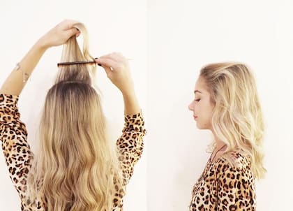 5- Agarrá de a mechoncitos a la altura de la oreja y fijalos con un clip en la mitad de la cabeza. Esto repetilo en 4 veces. Si tenés mucho pelo vas a nacesitar agarrarlo con más de un invisible por mechón.
