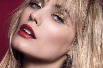 -Delineate los labios con un lápiz rojo y luego rellená con rouge a tono. Después, usá un pincel sintético para tomar el glitter e ir aplicándolo directamente sobre el labial, con pequeños toques.
