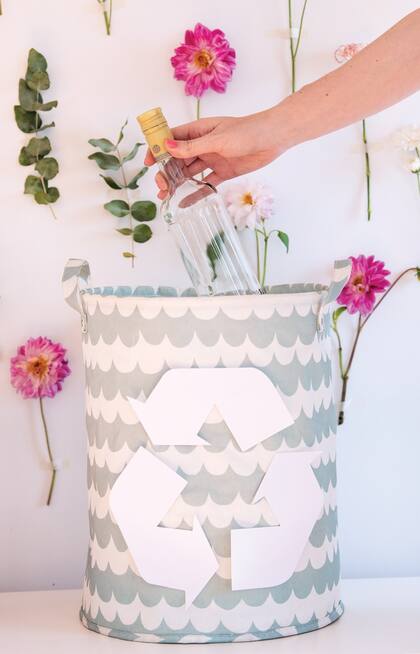 - Tachos separados: en algunas fiestas puede ser buena idea que haya tachos para los invitados; en ese caso es importante que estén bien señalizados. Podés poner carteles específicos que indiquen qué se tira en cada tacho sin confusión: "Solo latas y botellas", por ejemplo. Si se maneja la basura en la cocina, se puede dedicar un tacho exclusivo para "restos de comida" y un rincón para "envases" en general, botellas de vidrio y plástico, latas, que son los que van a ocupar más espacio. Sería ideal separar también papel y cartón y otros reciclables en general en un tercer espacio.