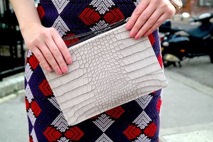 ¿Qué hay de las estampas y complementos? Estos también pueden ser guiados por las tendencias o nuestras preferencias. En el caso de las formas geométricas se ha visto que han vuelto a través de palazzos, maxifaldas e incluso en accesorios como collares donde los rombos, círculos o triángulos se presentan como figuras protagonistas. Pero también está ese aire tribal y minimalista que juega con los bloques de color sin ser muy recargado. El calzado para acompañar puede ir a tono o en contraste con las prendas. Lo importante es que se elija uno de los colores que más nos gusta de una estampa o de la prenda en sí para lograr el "shock" deseado.