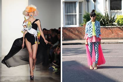 De la mano de la música y lo digital, en la moda el mundo fantasy aparece fusionado con la estética noventosa que hoy vemos en el regreso de los pins, de los tatuajes en colores pasteles, en las estampas o patchworks de unicornios o dibujos grandes aniñados en prendas XXL y en las zapatillas con luces.