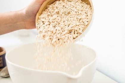 En un bol, mezclar la avena, las semillas y la sal.