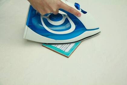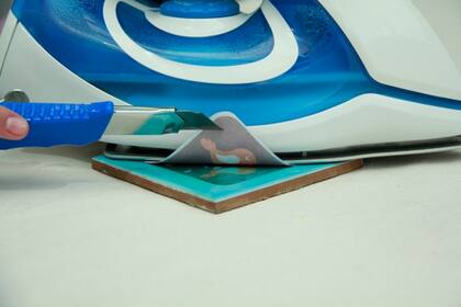 2. Calentá la plancha al máximo (no olvides anular la opción vapor). Elegí la imagen a sublimar sobre el azulejo y apoyala en el centro del mismo. Pasá la plancha sobre el papel en forma pareja y firme.