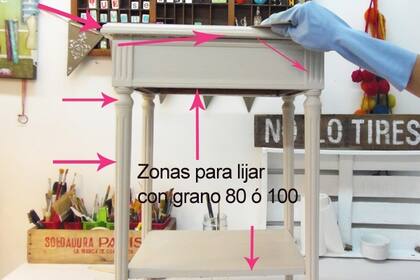 - Primero pasale una lija suave (Nº 360) al mueble. Retira el polvillo y aplicá una mano de barniz para sellar la superficie.