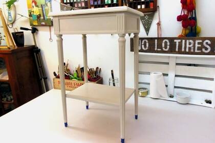 Ahora trabajemos con un mueble pintado hace tiempoAquí sólo vamos a utilizar lijas Nº 100 y 150, y cera incolora. Tomemos como modelo este mueble, que en una época fue un costurero y ahora se convirtió en una mesita. La pintura tiene varios años y algunas partes de la madera tienen golpes.