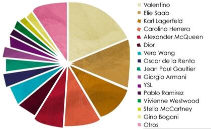 Otros: Zuhair Murad, Jorge Ibañez, Marc Jacobs, John Galliano, Benito Fernandez, Morgan Le Fay, Balmain, Marchesa, Sarah Burton, Alice Temperley, Alexander Wang, Dolce y Gabbana, Claudio Cosano, Versace, mi abuela, mi modista de toda la vida, Michael Kors, Ralph Lauren, Givenchy, Raf Simons, Gucci, Diane Von Furstenberg, Monique Lhuiller, Jenny Packham, Ronaldo Fraga, Coco Chanel, Alber Elbaz, Peter Pilotto, mi mamá.