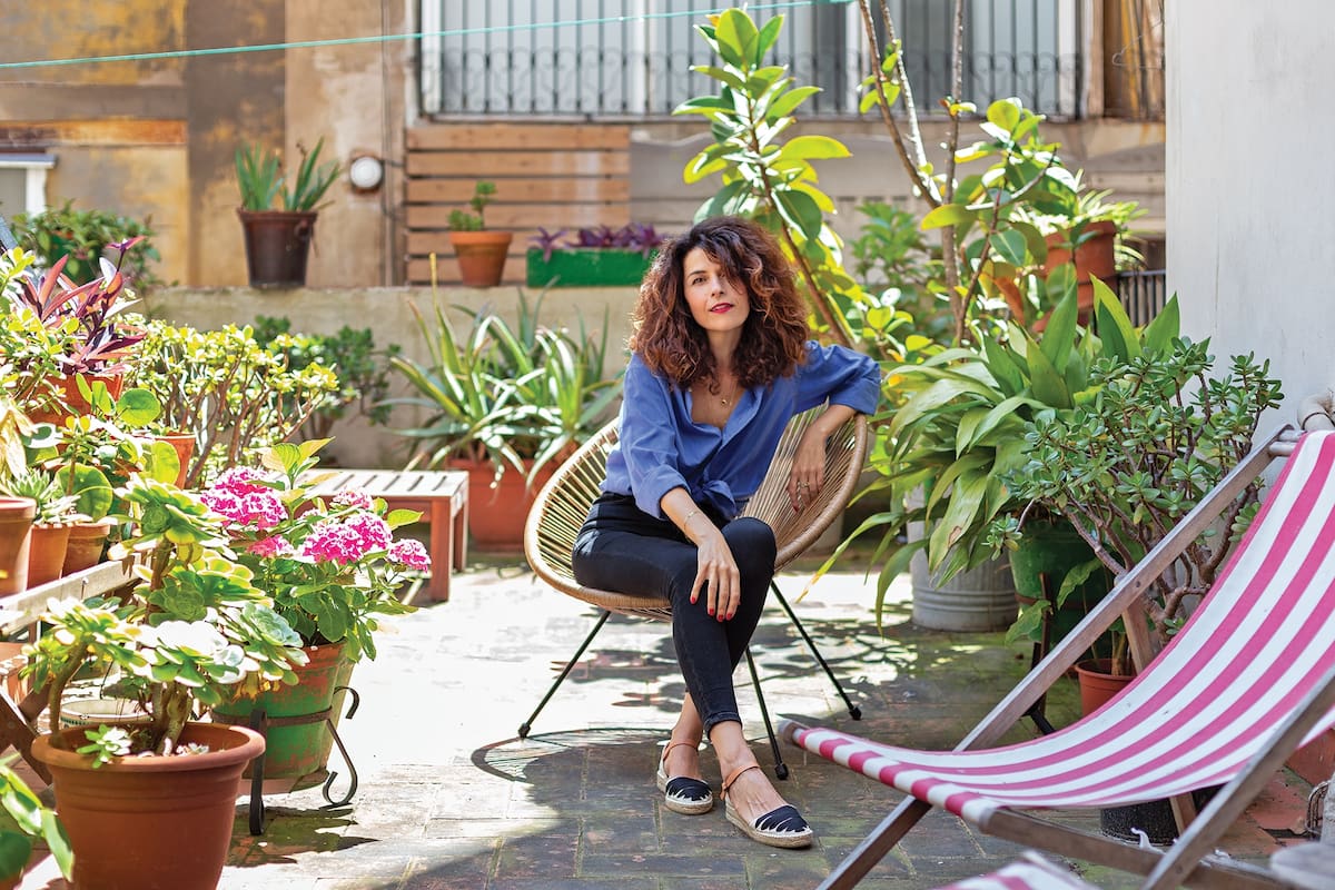 Elegir muy bien la compañía, gente que no me roba la energía sino que me mira con buenos ojos, que me aporta y yo le aporto. Comer muy bien, muy sanito y muy equilibrado. Hacer ejercicio. Meditar. Descansar. Consumo muy poco Netflix, porque ahora siento que no me lo pide el cuerpo. Antes, cuando tenía pareja, veía todos los días series. Pero ahora siento que no tengo esa necesidad. Necesito menos evasión que antes. Me gusta estar rodeada por cositas bonitas de decoración, flores, velas. También me gustan las cosas de cuidado corporal naturales. Aceites esenciales para el cuerpo, para las uñas. Tengo una bruma que huele a lavanda y le pongo a la almohada y me siento como ¡wow! Son pequeñas cosas muy baratas realmente. Ah, tengo una terraza, salgo todos los días a tomar el sol y es otro regalo que me hago. Me siento abundante.