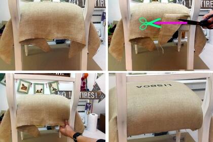 Imagen 2: Dobladillá la tela y llevá el género del costado de la silla hacia el frente del asiento. Ajustalo con un clavo.