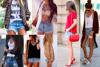 Short de jean: el más cómodo y práctico compañero de viajes a la playa. Amplios, ajustados, muy cortos, bermudas, desflecados y con dobladillo arremangado, oscuros, manchados…los hemos visto en mil variantes y se pueden combinar con muchísimas prendas para formar looks totalmente distintos. Short de jean + top de guipure + pañuelo floreado como cinturón + bolso tejido + sombrero para crear un estilo bien boho, short de jean bien rotoso + remera de rock + anteojos redondos + kimono liso + sandalias es una buena opción rockera para la noche.