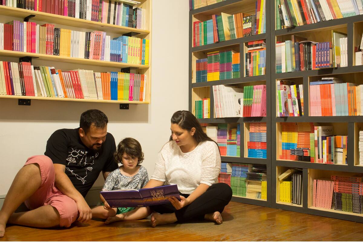 "En los inicios íbamos a las editoriales o distribuidoras a seleccionar los libros con nuestro hijo en el fular. Después eran los mismos trabajadores de esos lugares los que le mostraban material a Bruno para que pudiera ver y leer mientras nosotros seleccionábamos los materiales", recuerdan.