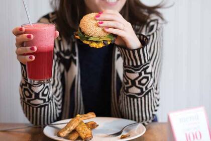 OH! Menú: sándwich de champiñones salteados, palta, mayonesa de zanahoria y espinacas frescas con ensalada o papas rústicas, licuado de ananá, frutilla y jengibre y torta de zanahoria, pasas y frutos secos, cubierta de crema.