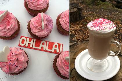 OH! Menú: cupcake de chocolate y remolacha con crema de manteca + chocolate OHLALÁ! (con Baileys y crema).