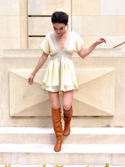 Este estilo justamente lo interesante que tiene es que te permite jugar con los elementos y agregar o quitar sin estereotipos, sino más guiadas por nuestras preferencias. Las botas en este caso, son las que le aportan personalidad y rompen en cierto modo con el romanticismo de la propuesta para evitar empalagarnos. Pero claramente las opciones son muy variadas y dependerá de cuan románticas estemos ese día para sumar los elementos que consideremos más necesarios.