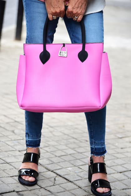 Como a mí, le encanta el color (la manzana no cae muy lejos del arbolito, ¿no?) y los incorpora en prendas más bien clásicas y con las que se siente a gusto. Esta vez, los colores pasteles fueron los protagonistas combinados con el blanco, un tono que está presente siempre en el verano. La tendencia vino de la mano del rosa cuarzo; el color de esta temporada según Pantone. Una de las cosas a las que nunca renuncia es a lo tacos; pero por su profesión debe elegirlos de muy buena calidad y cómodos. Estas sandalias fueron la combinación perfecta. El detalle lo aporta la camisa, ítem que me costó un poco que se pruebe pero que finalmente le encantó. Para completar, eligió una cartera en un gris que se amalgama perfectamente con los pasteles y el blanco.