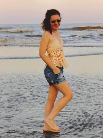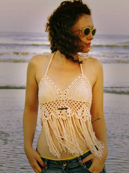 Como bien mencioné antes, en la costa siempre refresca un poco hacia la noche, y esta es la forma en que elegí incorporar el top tejido, con una camisa bien floja semi abierta que permita ver la prenda de abajo pero que a su vez cubra lo suficiente.