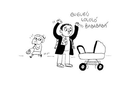 Pasean al bebé con el chupete abrochado en el cuello de la campera o una mantita con ositos colgando del hombro sin pudor. Hacen morisquetas, sonidos guturales e inventan palabras con tal de calmarlos. ¡Y lo logran!