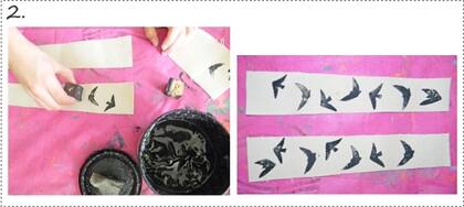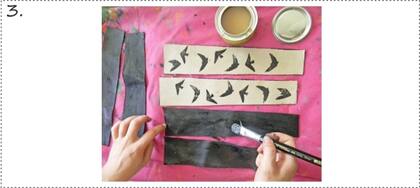 Estampamos la lona, si es que le quieren agregar estampa a las sandalias, nosotras las hicimos así porque le dan un valor agregado, no vas a encontrar en ningún lado otras iguales y aparte las personalizás y podés darle el colorido que te guste, es la técnica que usa Sofi para los estampados de su marca (más abajo les contamos un poco más). Creás un sello de goma eva con el dibujo que quieras y lo embebés con una esponja en tinta de serigrafía o en pintura para tela. Dejamos secar.
