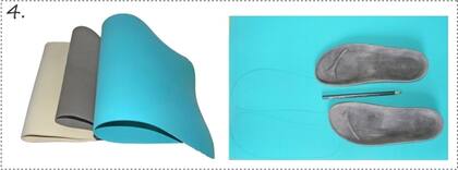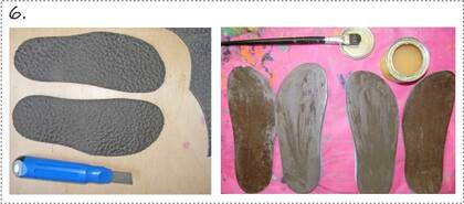 Si tienen crepina, que es la base antideslizante que va de suela, marcamos las bases y cortamos con cutter como hicimos en el paso 4, las pegamos a lo que ya teníamos armado de goma eva y volvemos a lijar para emparejar.