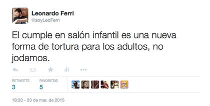 A mi descarga le siguieron dos respuestas que pegaron donde más dolía: en mi potencial papel como organizador y participante de algún futuro cumpleaños de Ben. "A ver el papi si juega también" y "cuando te toque organizarlo..." fueron los puñales que clavaron mis (a pesar de todo) queridos Sir Chandler y Luis Güerri. Porque si algo me cuesta en todo este circo es ponerme en el centro de la escena, y tener que disfrazarme, bailar y jugar el juego del animador. Me gusta cuando los demás lo disfrutan, pero no me veo ni un poco disfrutando de ocupar ese lugar. "¿No lo harías por tu hijo?", interrogó al regreso Naty, que por ser madrina de la agasajada tuvo su momento de protagonismo. "Supongo que sí", dije, y mientras manejaba sufrí mi futuro en silencio.