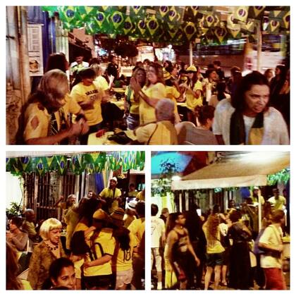 Cada uno hinchando por su país, escuchando recomendaciones de tragos de sus "contrincantes", compartiendo (bebidas y entradas brasileñas). Estábamos todos juntos, solo nos diferenciaban los colores de las camisetas. Los carteles prometían "1 Gol do Brasil = 1 Chopp de cerveja"