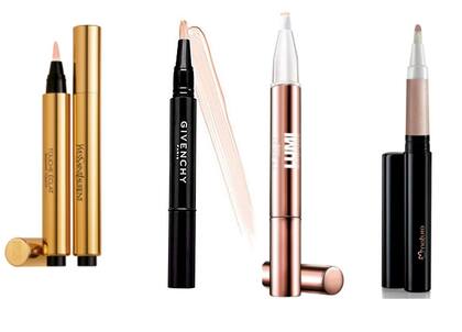 Los iluminadores son correctores un poco más diluidos y suelen tener un tinte un poco más grisáceo. Yo elijo usar siempre correctores más claros como iluminador, porque no dejan la piel gris, son más cálidos y dan más tiempo para trabajarlos, los iluminadores se suelen secar muy rápido y dejar marcas. Pero a mucha gente le gustan mucho los iluminadores, y acá van mis prefes: