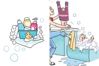 Segundo hijo: caos bañístico. Lo bañás día por medio, lo dejás que se coma el jabón (¡no le va a pasar nada!) y lo secás con la toalla que agarrás levantando la pierna en el aire. Y en verano, ¡la pileta es baño!