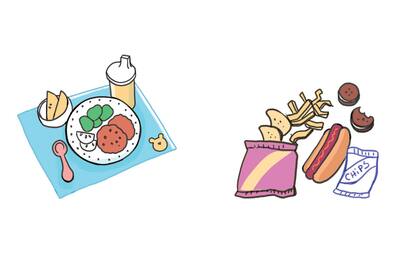 Segundo hijo: lo que hay. Bue, comer galletitas, patitas y hamburguesas no es tan grave. Tienen que probar de todo así de grandes no le hacen asco a nada.