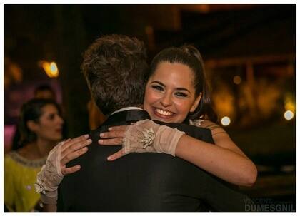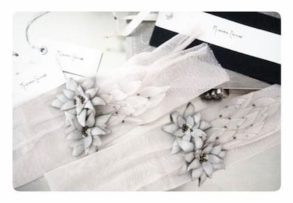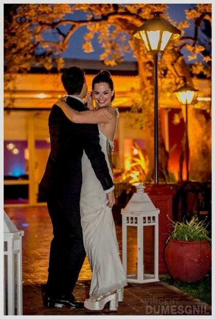Accesorios: No usé. Aviso porque me lo preguntaron en la revista. Tenía nomás el anillo que me regaló Nacho cuando me hizo "La propuesta", y después de la ceremonia, también el de casada. Lo que sí tenía eran los guantecitos de Muscaria. Eran de tul con pétalos de organza y flores de cuero, bordadas con perlitas de metal bronce. Un sueño.