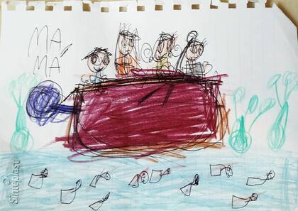 -¿Me hacés unos dibujos? Dibujos de tu viaje. Tres dibujos que representen tu viaje. ¿Puede ser?